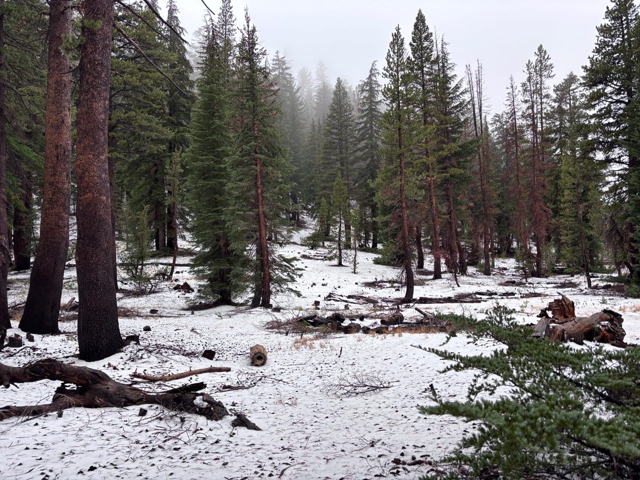 And the lookout point was… well, it was disappointing at first because it was socked in with fog. But it became magical as the fog blew and cleared, revealing a panorama of minarets and high mountains with telltale peaks of white against the alpenglow of dawn.