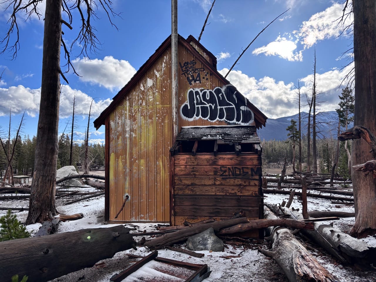 Maybe it’s the symmetry of it? Maybe it’s that “abandoned America” vibe? This might have been a winter Ranger cabin at some point, I'm not sure. Now it’s just a dilapidated little shack with a torn up mattress and warped wood, but I thought it was charming in its own weird way.