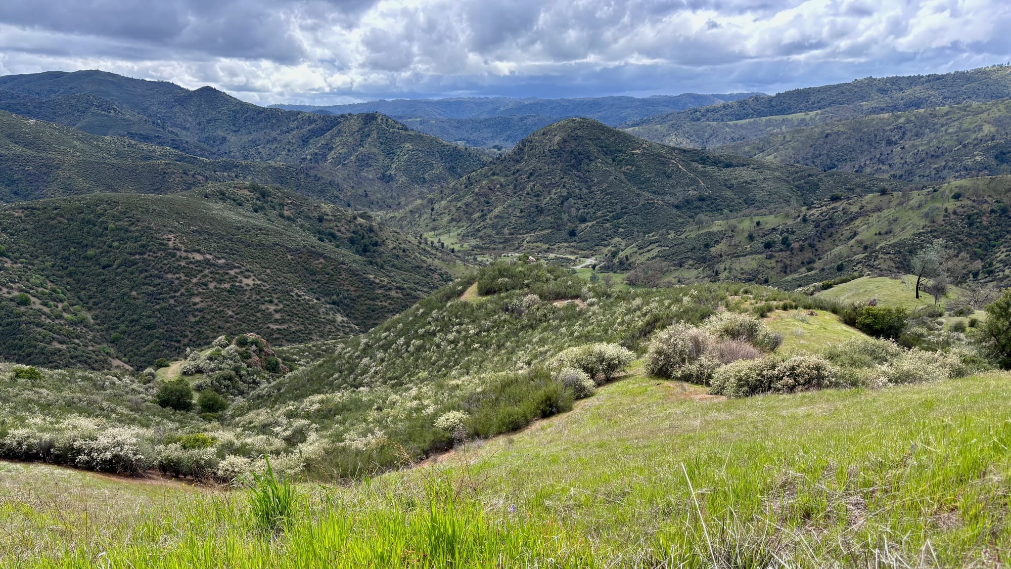 The fog started burning off, revealing the rolling green hills and mountains of the Diablo range. Manzanita, Northern Red Oaks, and wildflowers accented the beautiful scenery. It took a conscious effort to concentrate on my steps and not just stare endlessly at my surroundings.
