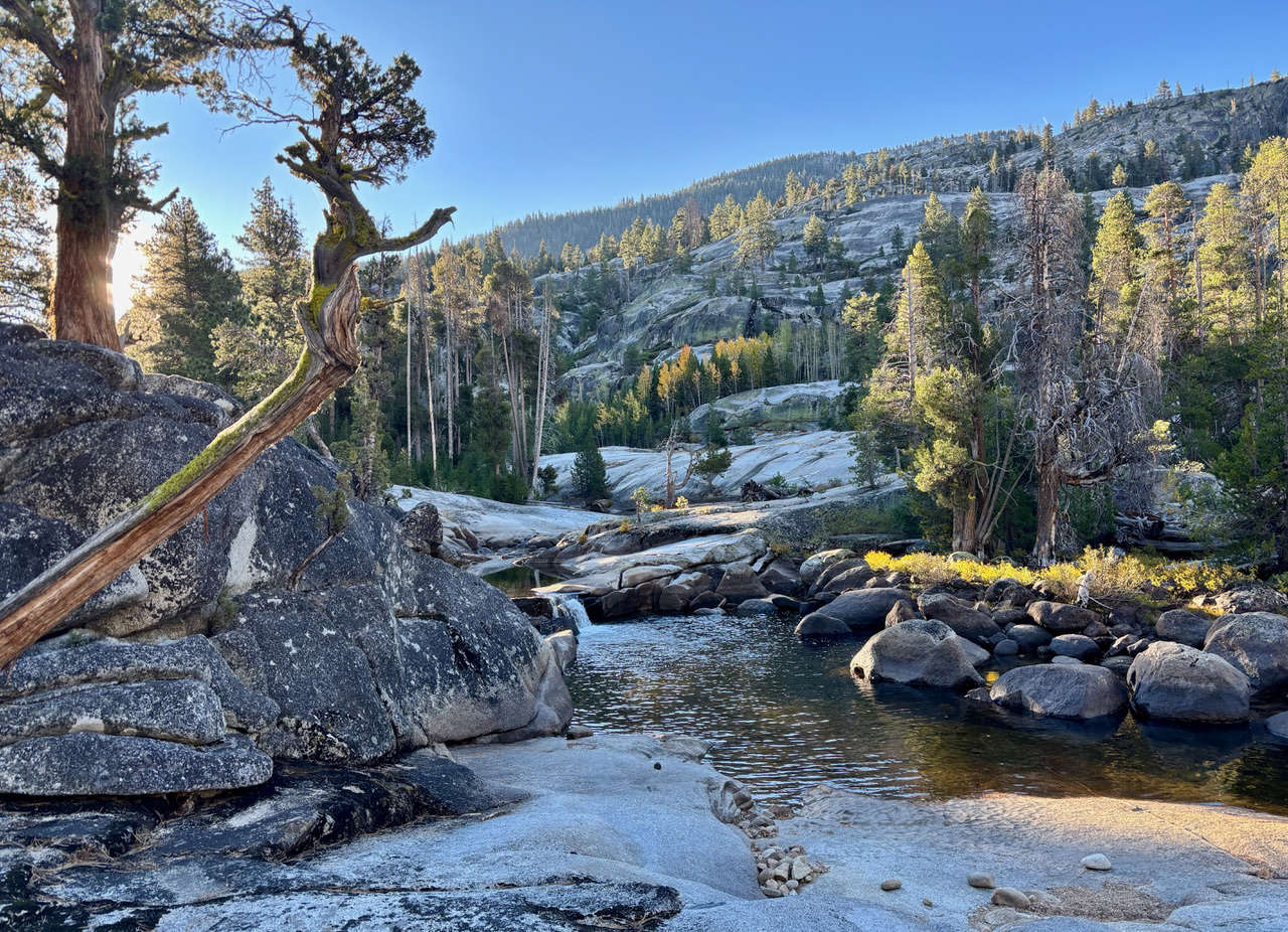 Instead of doubling back on the John Muir Trail, I took the southern route along the Merced River and was treated to an endless visual feast of small waterfalls, streams, and gentle river passages flowing down the glacier-sculpted canyons.