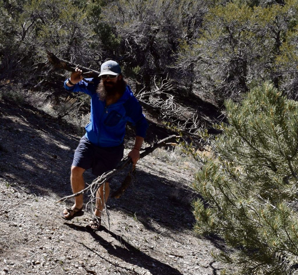 We found a dried-up creek bed which looked like a Ponderosa Pine graveyard. Gnarled branches and entire small trees lay on the ground, but it was a beautiful sight. We hauled them up the hill and back into our campsite, and my brother set out making three distinct piles. Twigs and kindling for a starter, medium sized branches to build it up, and logs to last through the night.