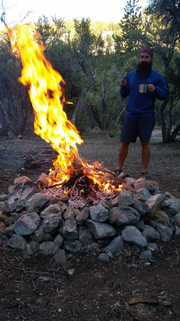 A fire had recently spread through this area, and the surrounding forest was littered with dead, dry wood which we’d scrounge for a fire. (It’s illegal to cut down living wood, so please don’t.)