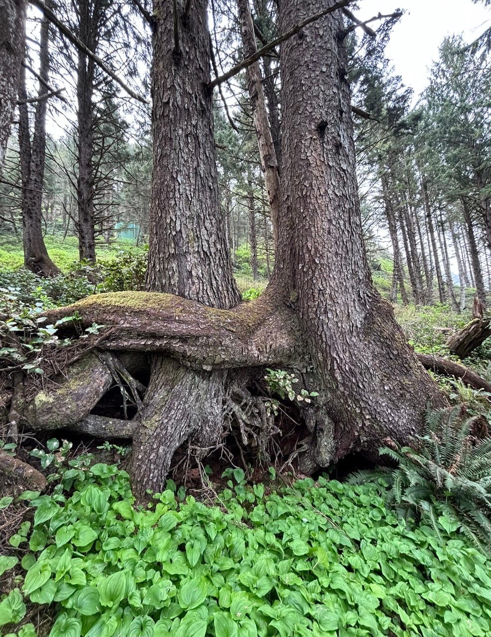 Remember those tree friends I mentioned? Kimber is my unwavering tree friend. Arm metaphorically around me, permanently. Propping me up emotionally (and I'm sure physically if the need ever arises). After I've doubled back and reach the junction that connects the Cape Lookout trail to the path leading south and down to the beach, I see her waiting for me.