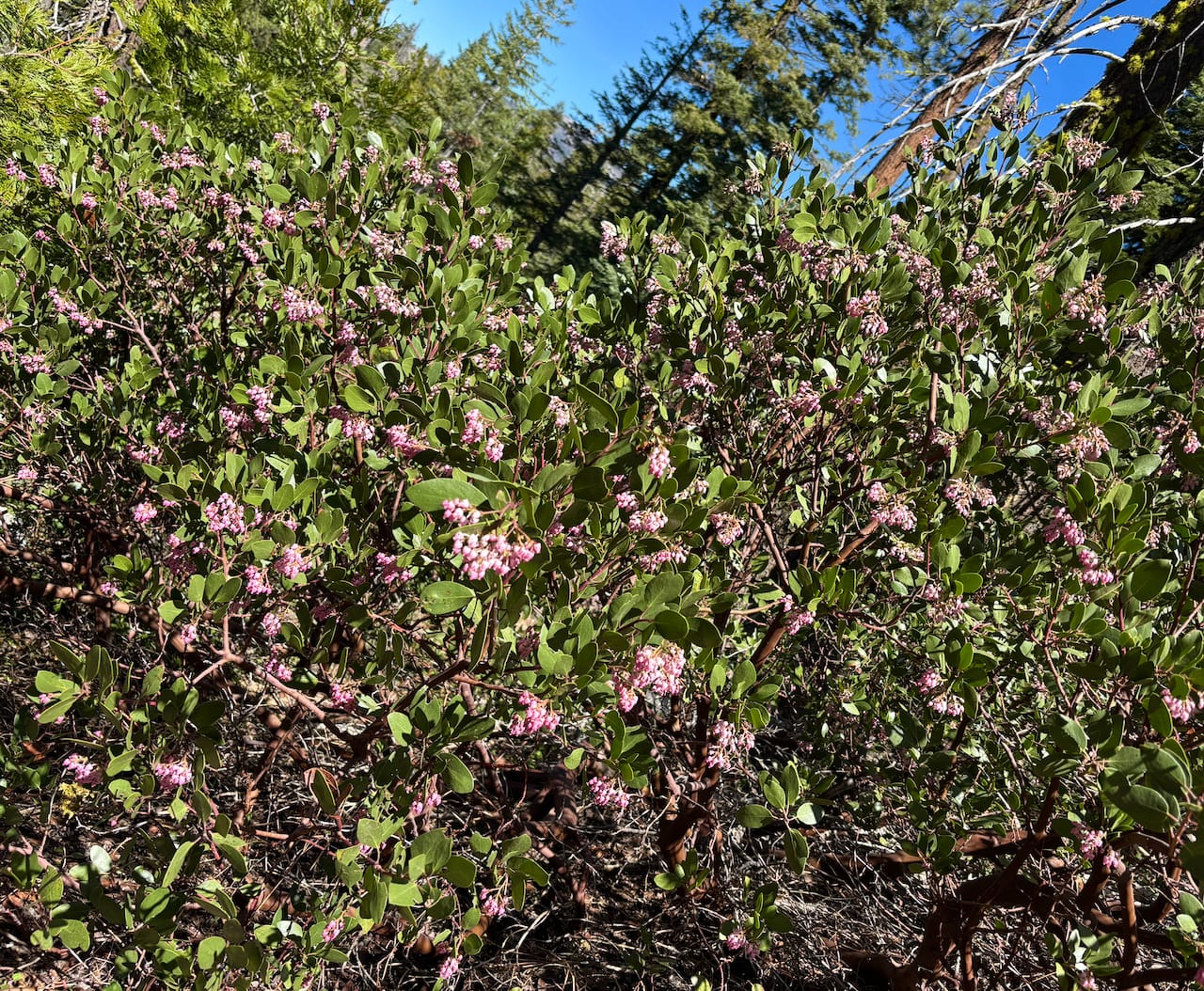 Even right near me, nature's randomness is amazing. Granite boulders sparkle in the morning sunlight, with color ranging from deep shades of grey-blue to silver all the way to mint green. Mountain whitethorn and blooming manzanitas decorate the earth. Mountain chickadees, woodpeckers, yellow-rumped warblers, American robins, and even the squirrels all sing their songs in a nonstop chorus that is endlessly entertaining to listen to.
