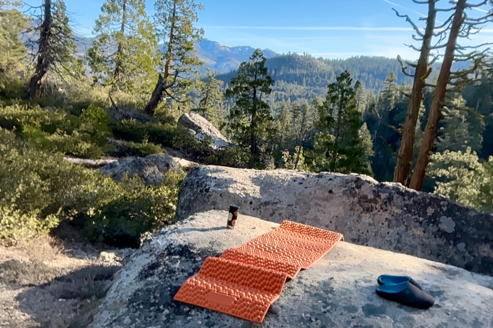 At 7:15am I went to a spot at camp I'm calling Meditation Rock. I brought my coffee and my Nemo pad. I sat down, faced east, and waited for the sun to creep over the nearby mountain and warm my bones.