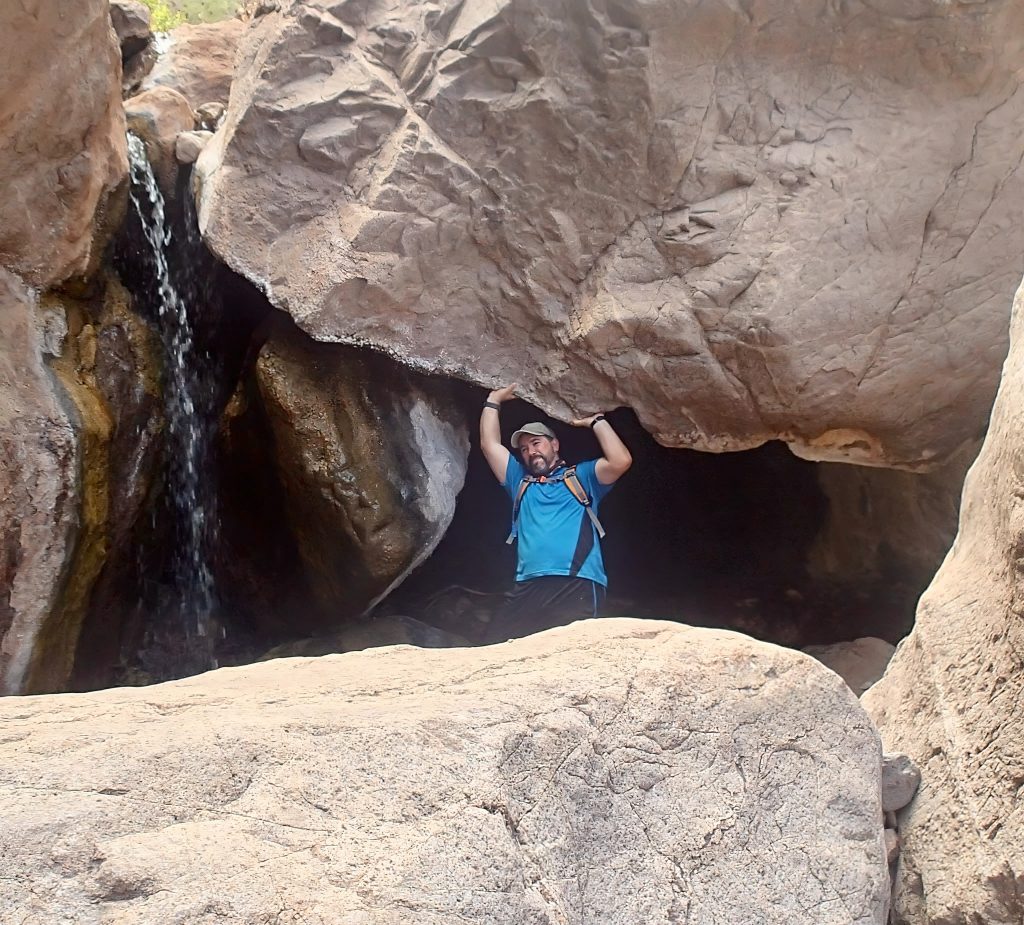Two miles further down, streams of warm liquid began to materialize in the sand. I followed the water as it spilled into a hot spring obscured by a massive boulder, which eclipsed the size of the last one that had left me almost paralyzed with fear. I descended this one less timidly but still cautiously, half climbing and half sliding, nervous and anxious but driven forward by what nature had in store for me.