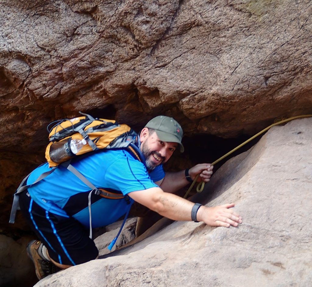 When her feet once again met the gravel trail, she smiled and looked up at me, warning that the rock was slippery in a certain spot. “Turn your body this way, ok put your right foot there, grab this handhold here, use the rope for stability” she instructed, paying her newly acquired knowledge forward.